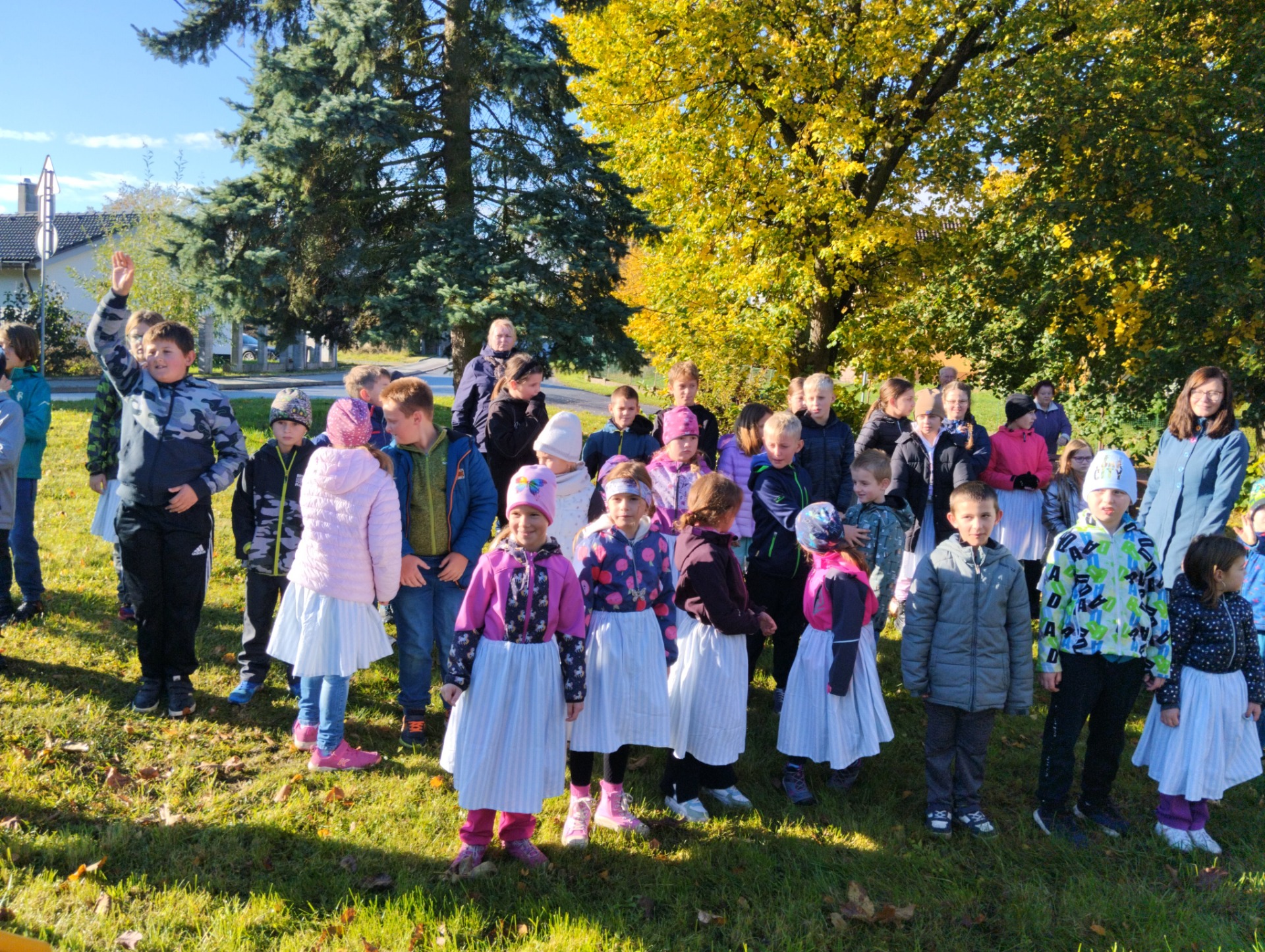 Celá škola se v pondělí zúčastnila posvícenských oslav (Zlaté hodinky). Část dětí byla na slavnostní mši a poté se všichni připojili k průvodu obcí, kde předvedly krátké, ale povedené vystoupení.